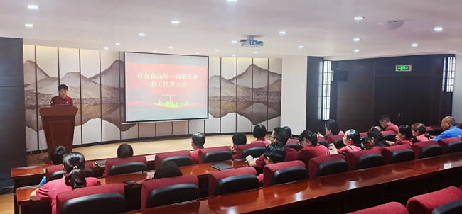 6月24日,伴随着雄壮嘹亮的国歌声,有友食品第一届第五次职工代表大会拉开了帷幕,30位职工代表参加本次会议。
